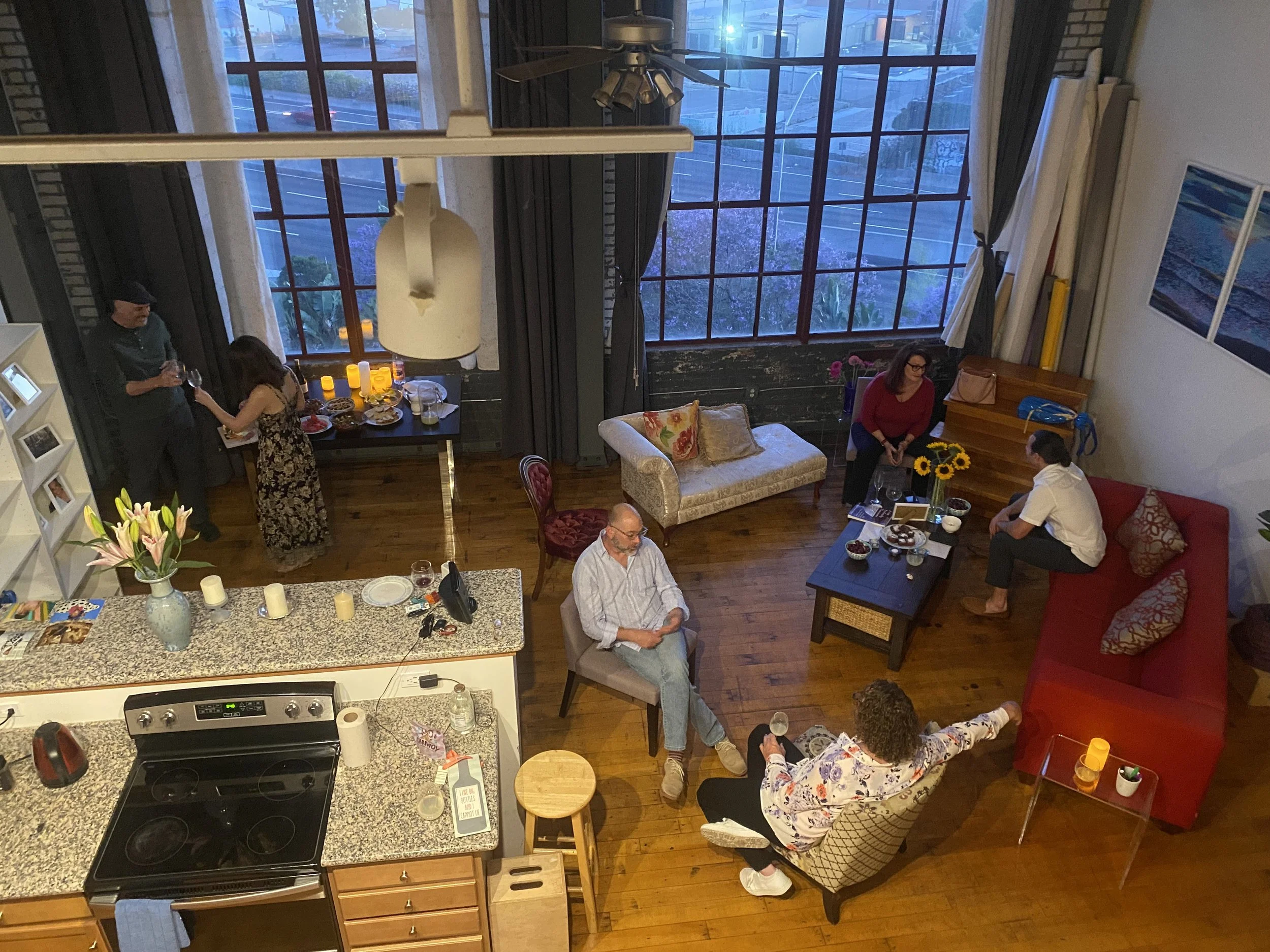 Experience the charm of hosting your event in a unique artist loft with two spacious rooms, soaring ceilings, and floor-to-ceiling windows. This versatile space offers a beautiful venue for your gathering and comfortable accommodations for guests. Enjoy a fully equipped kitchen and bathroom, and an upstairs loft for sleeping that ensures privacy and separation from your event area.